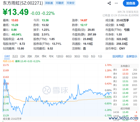 公告讦出后,今天上昼东方雨虹股价一度着落1.7%。逼迫下昼A股收盘,东方雨虹股价报13.49元/股,微跌0.22%,总市值322.24亿元。